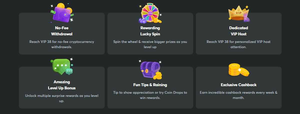 • Constant Chat Rains and Coin-Drops. These rewards are given for active participation in the platform’s chat rooms and are quickly claimed by the most responsive users.