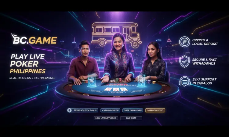 Play live poker Philippines on BC.Game with real dealers and HD streaming. Choose Texas Hold’em Bonus, Casino Hold’em, Three Card Poker, and Caribbean Stud. Deposit crypto with PHP-equivalent amounts shown, plus local on-ramp options. Licensed under Anjouan (Twocent Technology Ltd). Access via desktop, Android APK, or iOS web app. Secure KYC, fast withdrawals, and support in English and Tagalog. Low-latency video and live chat deliver smooth real-time play.