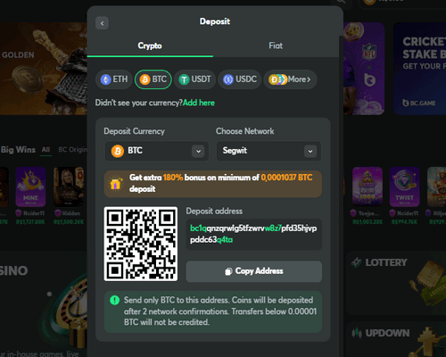 - Select your paying method. BC.Game runs several cryptocurrencies. Choose your favourite approach—that of Bitcoin, Ethereum, etc.