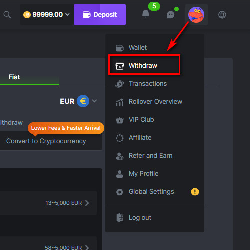 2. Navigate to the withdrawal section. Click the profile icon from the top right-hand corner. On the drop-down, you will select “Withdraw.” This way, you get to the Withdraw Page.