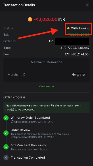 • Implication. Your withdrawal request is being processed by the payment provider.